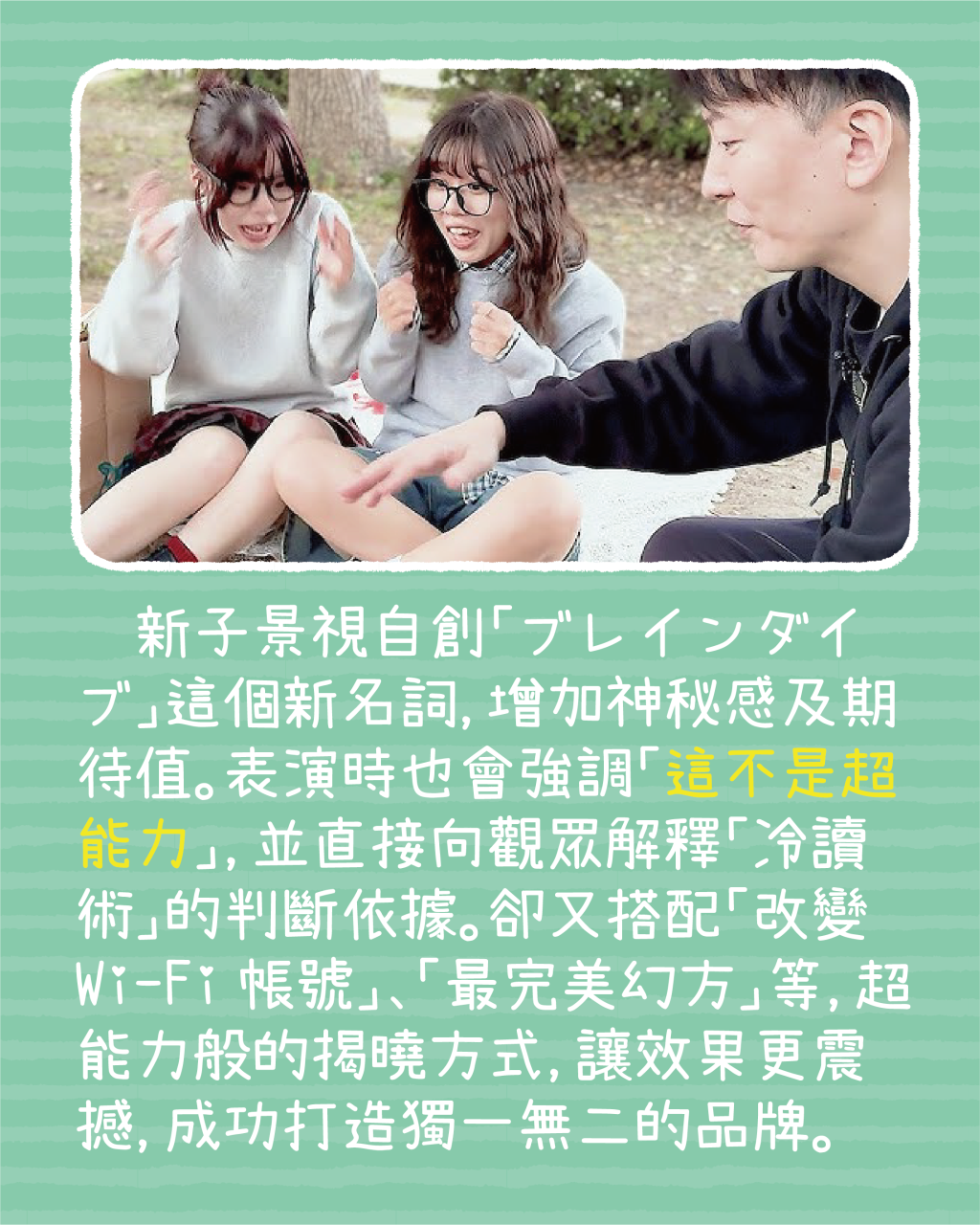 新子景視自創「ブレインダイブ」這個新名詞,除了增加神秘感,也拉高觀眾的期待值。
