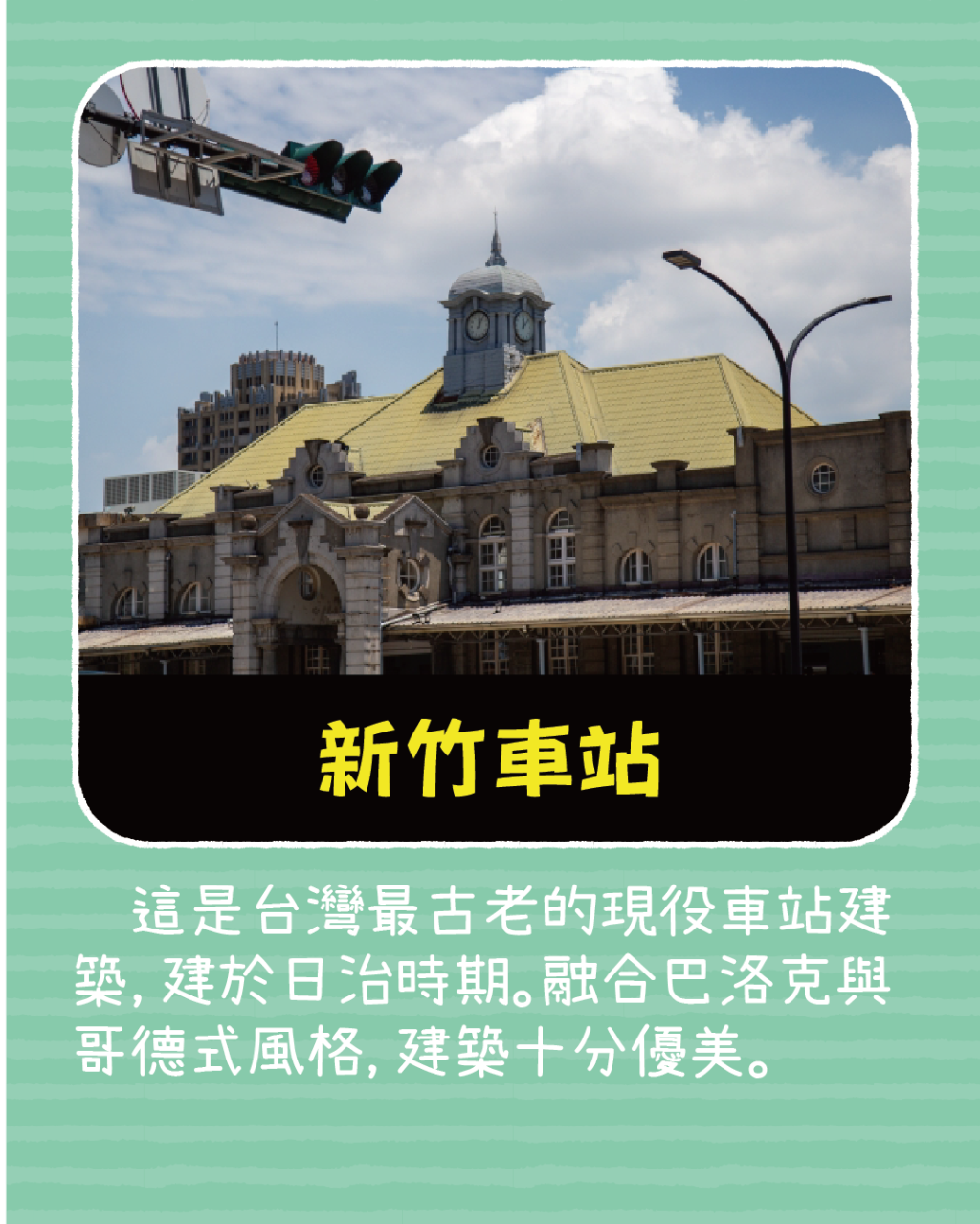 這是台灣最古老的現役車站建築,建於日治時期。融合巴洛克與哥德式風格,建築十分優美。